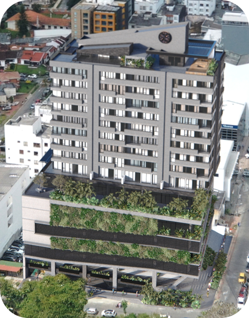 Helipuerto: Conexiones al nivel más alto Primavera Life es pionero en el Eje Cafetero con el primer helipuerto construido sobre un edificio en la región, un distintivo que nos posiciona a la altura de grandes ciudades del mundo. Este espacio exclusivo facilita la conexión ágil y directa con otros destinos, aportando prestigio, movilidad estratégica y un valor agregado para residentes, visitantes y aliados comerciales.
